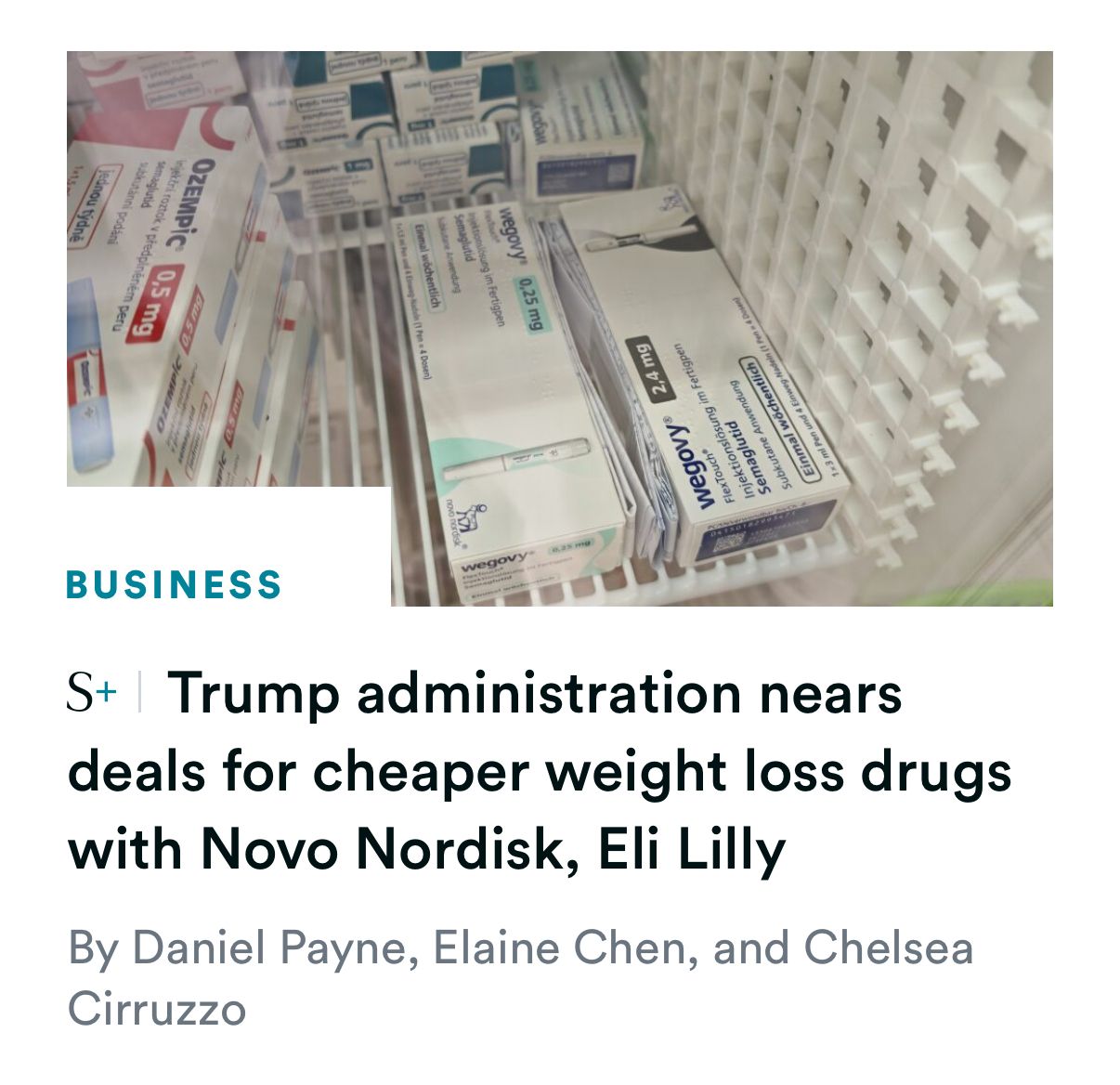 According to STAT News and The Wall Street Journal, the Trump administration is close to securing a deal with Lilly and Novo to lower the direct-to-consumer prices of their GLP-1s while also expanding Medicare and Medicaid coverage to include these drugs for weight loss.